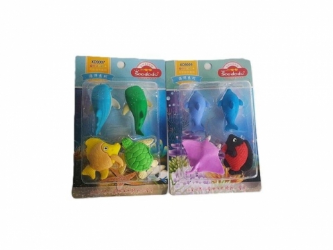 Gumki do ścierania zwierzęta morskie 4szt MIX