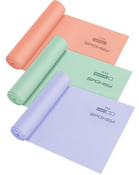 Zestaw taśm treningowych o strukturyzowanej antypoślizgowej powierzchni, zapewniającej lepszy chwyt. Taśmy mają wszechstronne zastosowanie, mogą być wykorzystywane podczas ćwiczeń siłowych, rozciągających, aerobowych, treningu fitness, Pilatesu czy jogi. Wykonane z lekkiej i wytrzymałej gumy lateksowej. 3 zakresy oporu.