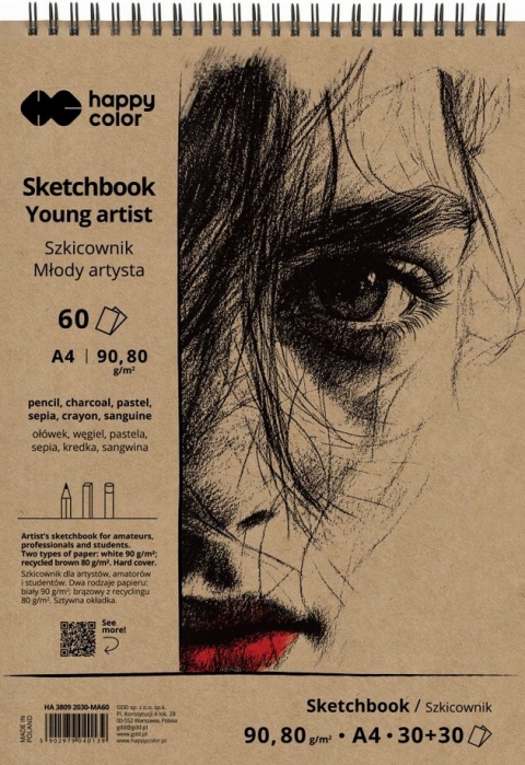 Happy Color, Szkicownik na spirali A4/60 ark - Młody Artysta
