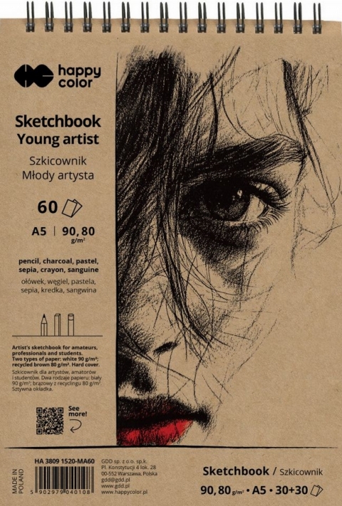 Happy Color, Szkicownik na spirali A5/60 ark - Młody Artysta