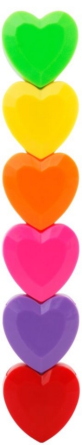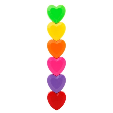 Urocze zakreślacze w kształcie serc w pięciu jaskrawych kolorach. Idealne do wyróżnienia notatek bądź rysowania. Serca łączą się ze sobą, co jest świetną zabawą dla dzieci.