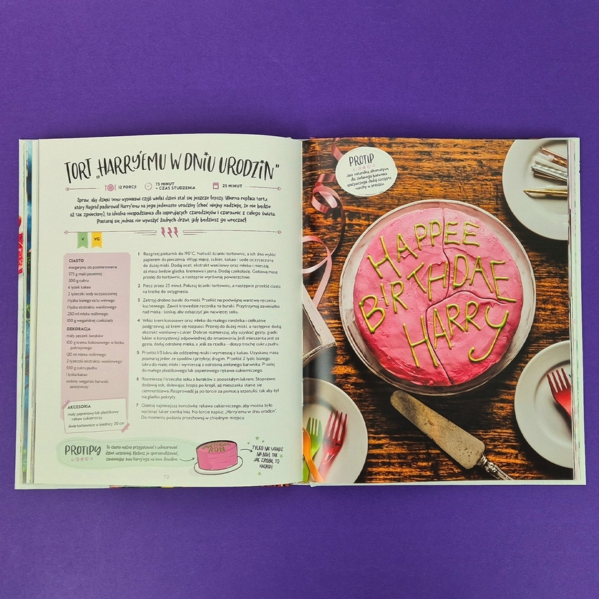 Urządź dla swoich przyjaciół poczęstunek inspirowany ucztą w Wielkiej Sali lub w pojedynkę rozkoszuj się magicznymi słodkościami. Książka zawiera mnóstwo przepisów bezglutenowych, wegetariańskich oraz wegańskich, więc jest dobra dla wszystkich!