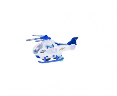 Model plastikowego helikoptera na kółkach z ruchomymi śmigłami.