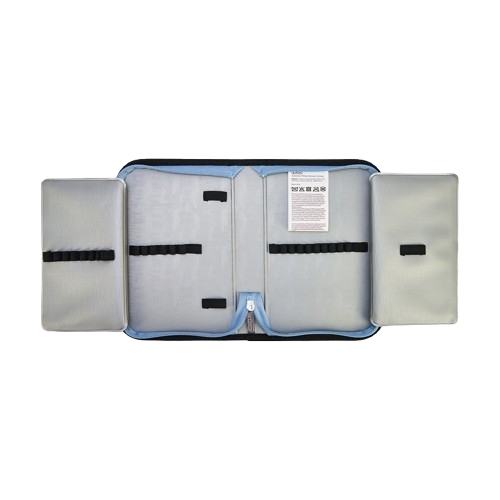 - Duża główna komora z oddzielną przegrodą na książki, dwiema bocznymi kieszeniami i pojemną przednią kieszenią