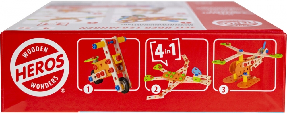 Heros, Klocki konstrukcyjne Samolot drewniany 4w1, 90 elementów