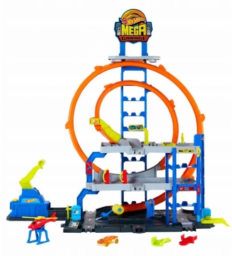 Zestaw Hot Wheels City Mega Garaż Gigapętla z trzema poziomami zabawy nakręca wyobraźnię młodych rajdowców do wymyślania kreatywnych opowieści i epickich sztuczek kaskaderskich w odjazdowym wydaniu.