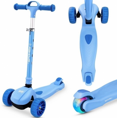 Trójkołowa, składana hulajnoga balansowa. Posiada regulowaną kierownicę, dzięki czemu hulajnoga rośnie razem z dzieckiem. Wyposażona w dwa kółka z przodu i szerokie koło tylne, dla zwiększenia komfortu i stabilności podczas jazdy. Kółka świecą w trakcie ruchu, zwiększając widoczność dziecka. Kierownica posiada antypoślizgowe uchwyty, zapewniając bardziej pewny chwyt. To idealny wybór dla dzieci, które stawiają swoje pierwsze kroki na hulajnodze.