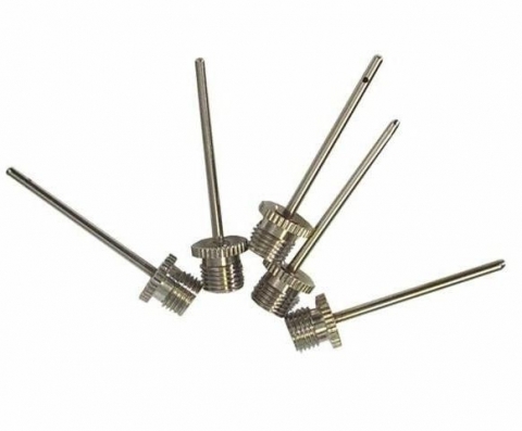 Zestaw stalowych, wymiennych adapterów igieł do pompek przeznaczony do pompowania wielu rodzajów piłek, materaców czy opon. W zestawie 5 sztuk.