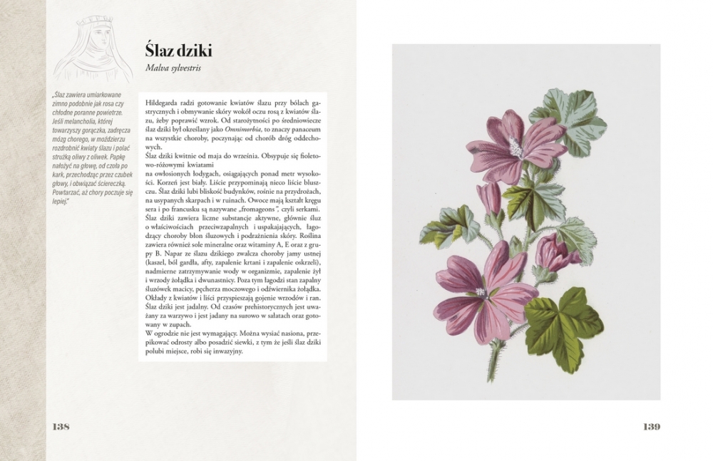 Teraz i Ty możesz z zebranej wiedzy skorzystać! Wystarczy podążać śladami tej niezwykłej kobiety w bogato ilustrowanym dziele, zawierającym teksty świętej, i poznać jej 60 ulubionych roślin: ich cechy charakterystyczne, zalety, historię, a także sposoby uprawy i wykorzystania na co dzień!