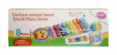 Cymbałki 8-tonowe z kolorowymi klawiszami i pałeczkami do grania. Produkt przeznaczony dla dzieci od lat 3. Produkt zapakowany w kartonowe pudełko. Podane wymiary są wymiarami opakowania.