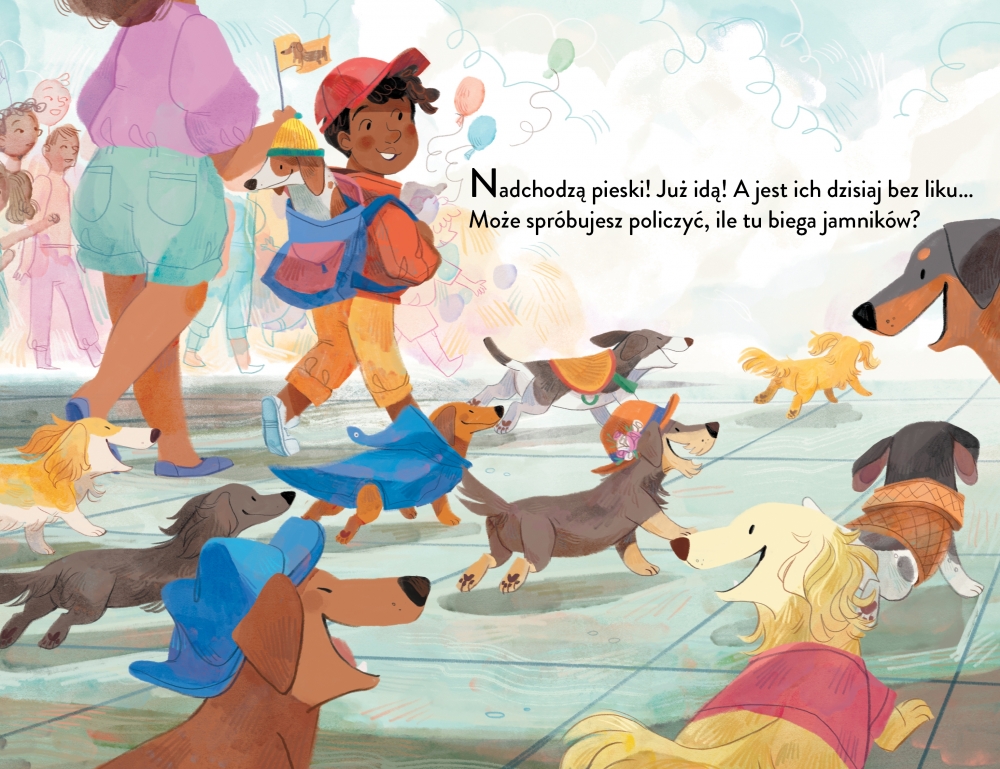 Pełna energii opowieść o liczeniu z udziałem psów w przezabawnych przebraniach – zainspirowana prawdziwymi marszami jamników!