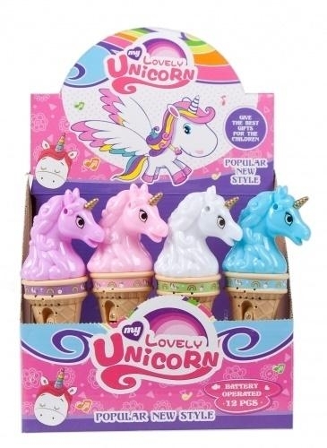 Skrzydlate Jednorożce to znane z baśniowych opowiadań stworzenia, które dzięki Mega Creative masz okazję poznać osobiście. Zabawa z Jednorożcem przeniesie Cię w beztroski i kolorowy świat! Jednorożec znajduję się w rożku do loda oraz posiada efekty dźwiękowe oraz świetlne. Produkt przeznaczony dla dzieci w wieku: 3+. Występuje w 4 wersjach kolorystycznych: różowe, fioletowe, białe oraz niebieskie. Wymaga zasilania bateriami: 3 x AG13-załączono do zestawu.