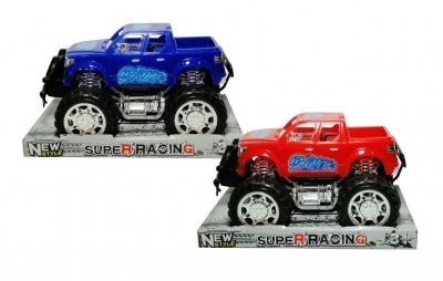 Zabawka zapakowana w kartonową podstawkę z przezroczystym kloszem.