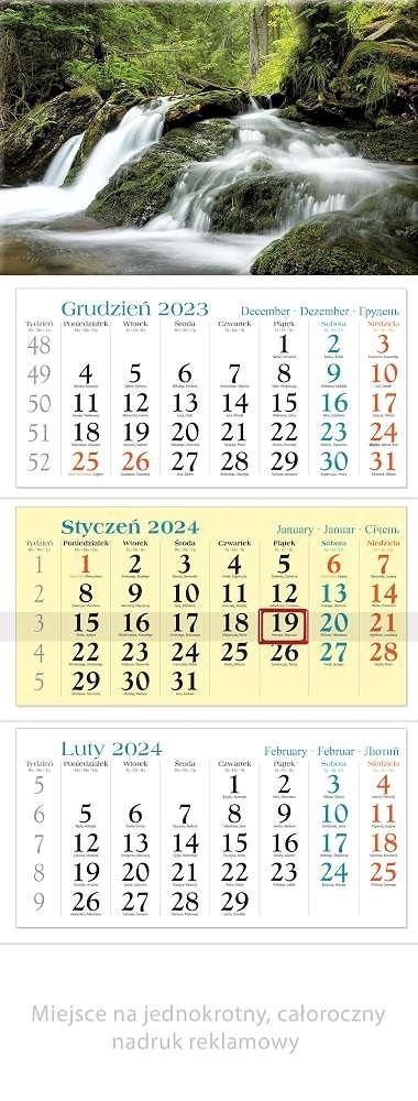 format kalendarza z "główką" i polem pod nadruk reklamowy 32 x 86 cm;