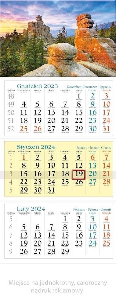 papier: główka karton 230 g/m2; plecy karton 300 g/m2; kalendarium papier offset 90 g/m2;