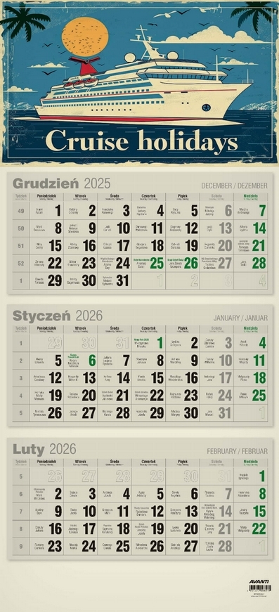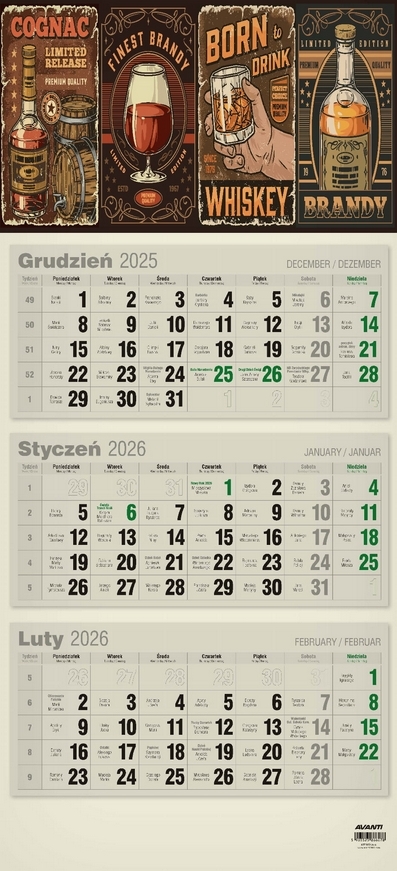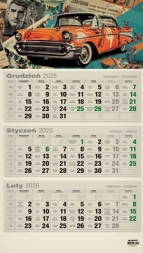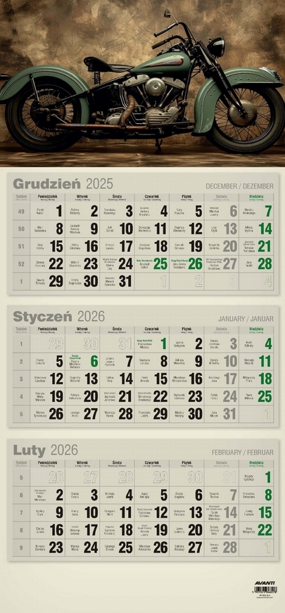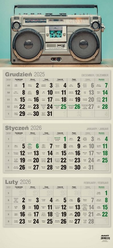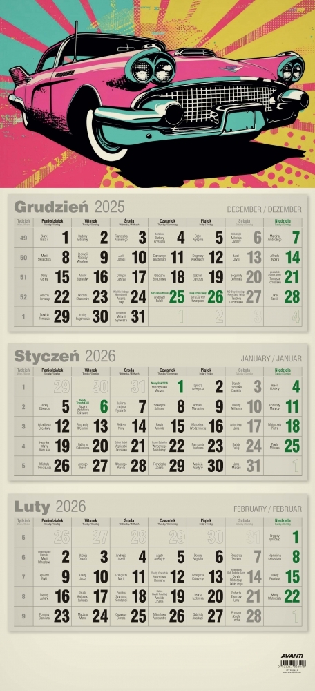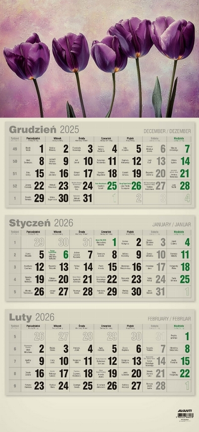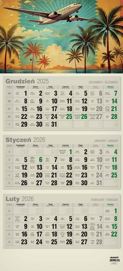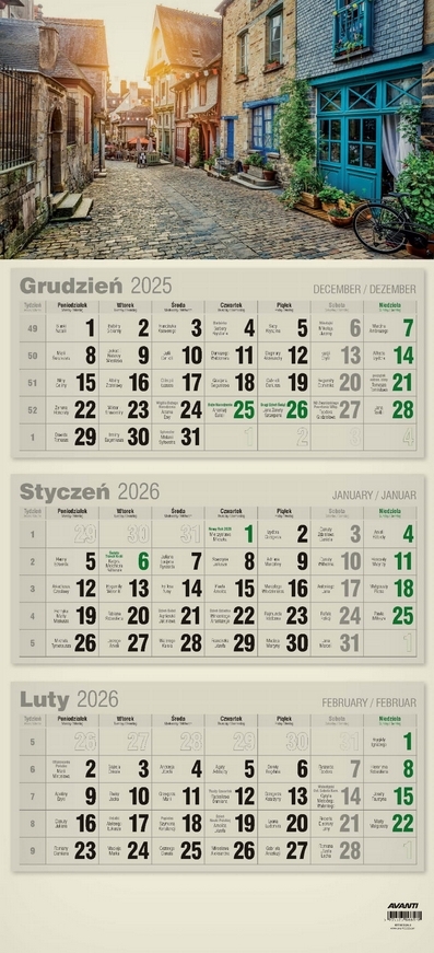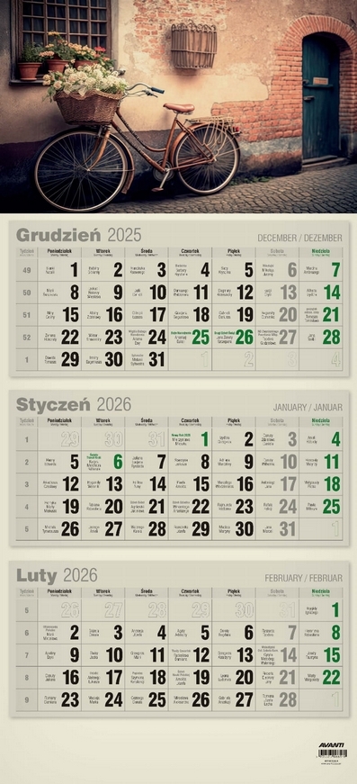 Kalendarz 2026 trójdzielny płaski EKO, 1 szt