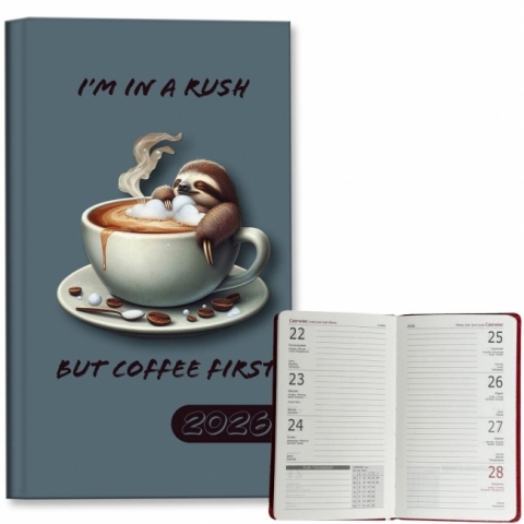 Kalendarz 2026 A6 tygodniowy Leniwiec Kawa