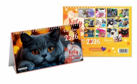 Kalendarz biurkowy 2026 Koty, kotki i kociaki Kalendarz na biurko rok 2026 z serii "Koty, kotki, kociaki" Każdy miesiąc cieszy pięknym zdjęciem kotka i inspirującym cytatem, które będzie wspaniałą ozdobą Waszego domu lub biura. Taki kalendarz to idealny prezent dla miłośników kotów Kalendarz ma wymiary 21x12 cm Dodatkowe kalendarium na odwrocie z miejscem na notatki Styl: cytaty, nowoczesny, klasyczny, zdjęciowy Prezent: dodatkowe kalendarium styczeń 2027