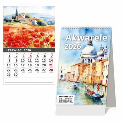 Kalendarz 2026 Biurkowy Pionowy Akwarele miesięcznyKlasyczny kalendarz biurkowy na spirali, z miesięcznym kalendarium, wersja pionowa, z innym obrazkiem na każdy miesiąc. Kalendarz posiada specjalną podpórkę, która zapewnia stabilność.Wymiary 10,5 x 16 cm