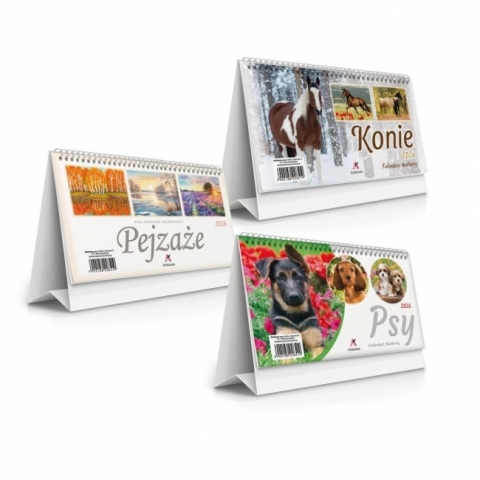 dostępny w 12 tytułach, 12 plansz, układ miesięczny, rozmiar 195x110 mm, okładka lakierowana, podkładka bindowana - namiot na spirali