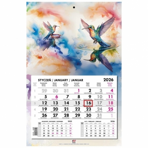 Kalendarz 2026 jednodzielny główka płaska Koliber