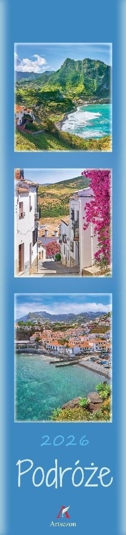 12 plansz, układ miesięczny, rozmiar 13,5 x 58,8cm, okładka lakierowana, kalendarz na spirali z zawieszką