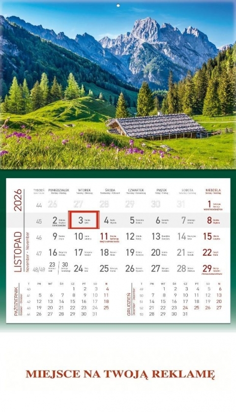 Możliwość wykonania nadruku reklamowego na dole kalendarza.
