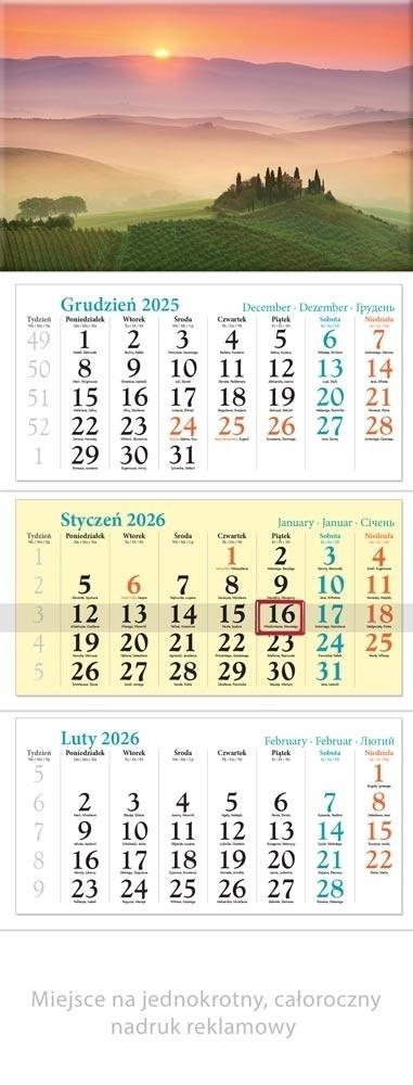 Kalendarz 2026 ścienny trójdzielny Toskania