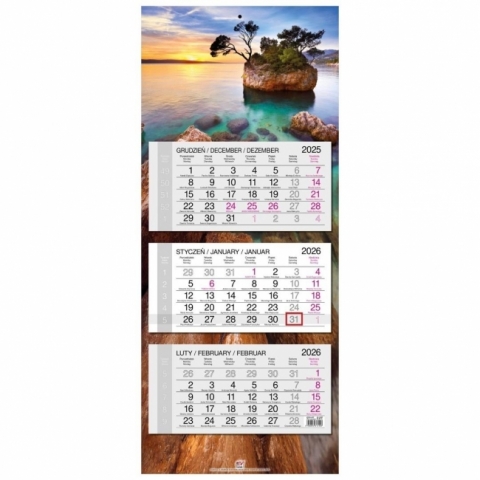 Kalendarz 2026 trójdzielny główka płaska Chorwacja