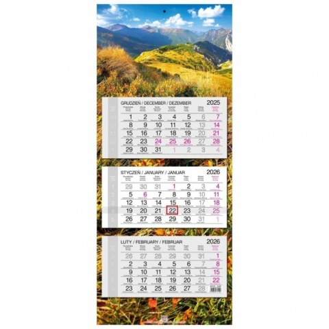 Kalendarz 2026 trójdzielny główka płaska Tatry