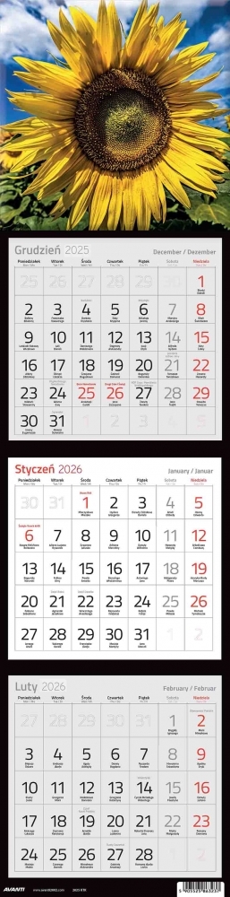 Kalendarz 2026 trójdzielny kwadratowy, 1 szt