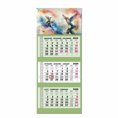 Kalendarz 2026 trójdzielny LUX gł. wypukła Koliber