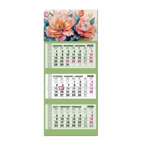 Kalendarz 2026 trójdzielny LUX gł. wypukła Kwiaty