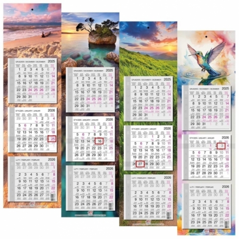 Kalendarz 2026 trójdzielny wąski płaski mix