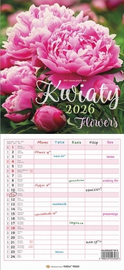 Kalendarz 2026 wieloplanszowy wąski - Kwiaty