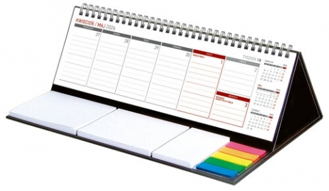 •nr katalogowy: KB042B•układ: tygodniowy•format kalendarium: 309 x 99 mm•druk: 2+0•format kalendarza: 315 x 192 x 112 mm•foliowany pojedynczo Wygodny kalendarz stojący na biurko z przejrzystym kalendarium w układzie tygodniowym z poręcznymi karteczkami samoprzylepnymi do notowania. Przydatny zwłaszcza w biurze. W kalendarzu zaznaczono święta. Część informacyjna kalendarza zawiera:•Kalendarium 2026•Miesiąc bieżący, poprzedni i następny•Daty świąt•Samoprzylepne kartki do notowania•Kolorowe znaczniki