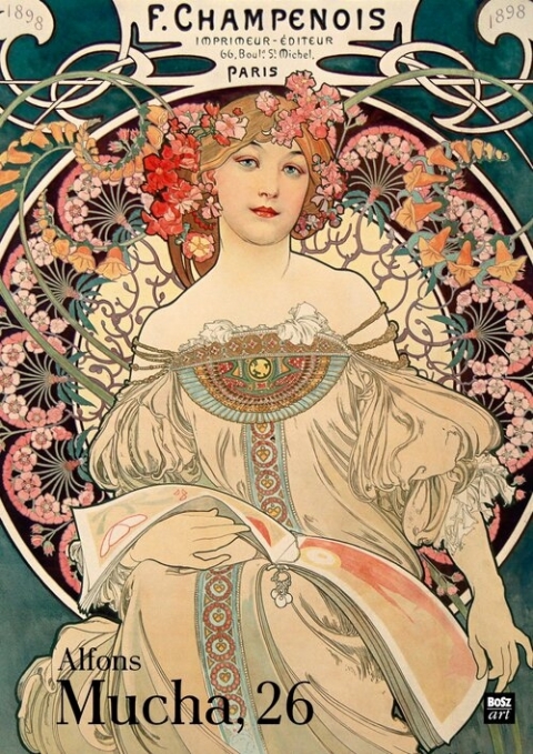 Kalendarz 13-kartkowy na 2026 rok z 12 ilustracjami prac Alfonsa Muchy w formacie A3 (420×297 mm) wydrukowany na kredowym papierze o gramaturze 170g. Indeks dzieł Alfonsa Muchy znajdujących się w kalendarzu:  Rozmarzenie, plakat dla wydawnictwa F. Champenois, 1897 Sztuki piękne: Taniec, 1898 Zodiak, 1896 Cztery pory roku: Wiosna, 1896 Monako – Monte-Carlo, 1897 Salome, 1897 Kamienie szlachetne: Szmaragd, 1900 Cztery pory roku: Lato, 1896 Pióro, 1899 Cztery pory roku: Jesień, 1896 Pierwiosnek, 1899 Kamienie szlachetne: Rubin, 1900 Cztery pory roku: Zima, 1896  Alfons Maria Mucha (1860–1939) był czeskim grafikiem i malarzem, jednym z czołowych przedstawicieli secesji i fin de siècle’u. Jego twórczość łączyła tradycje bizantyńskie z nowoczesnym stylem epoki. Mucha zasłynął przede wszystkim z grafik przedstawiających kobiety w stylu belle époque – wyidealizowane, otoczone kwiatami, liśćmi, symbolami i dekoracyjnymi arabeskami, co stało się jego rozpoznawalnym znakiem artystycznym.