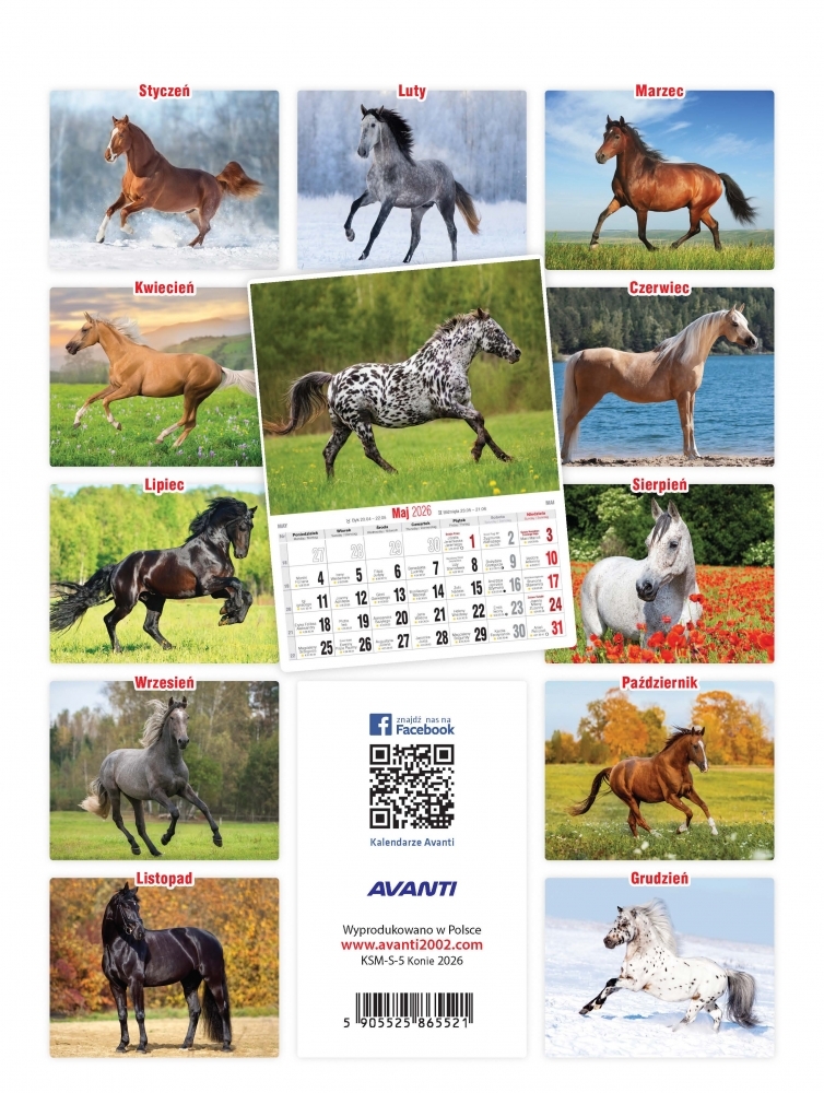 Kalendarz ścienny mały spirala 2026 - Konie
