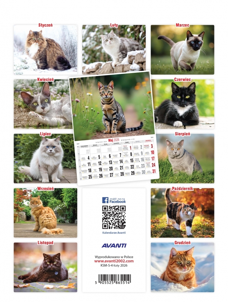 Kalendarz ścienny mały spirala 2026 - Koty