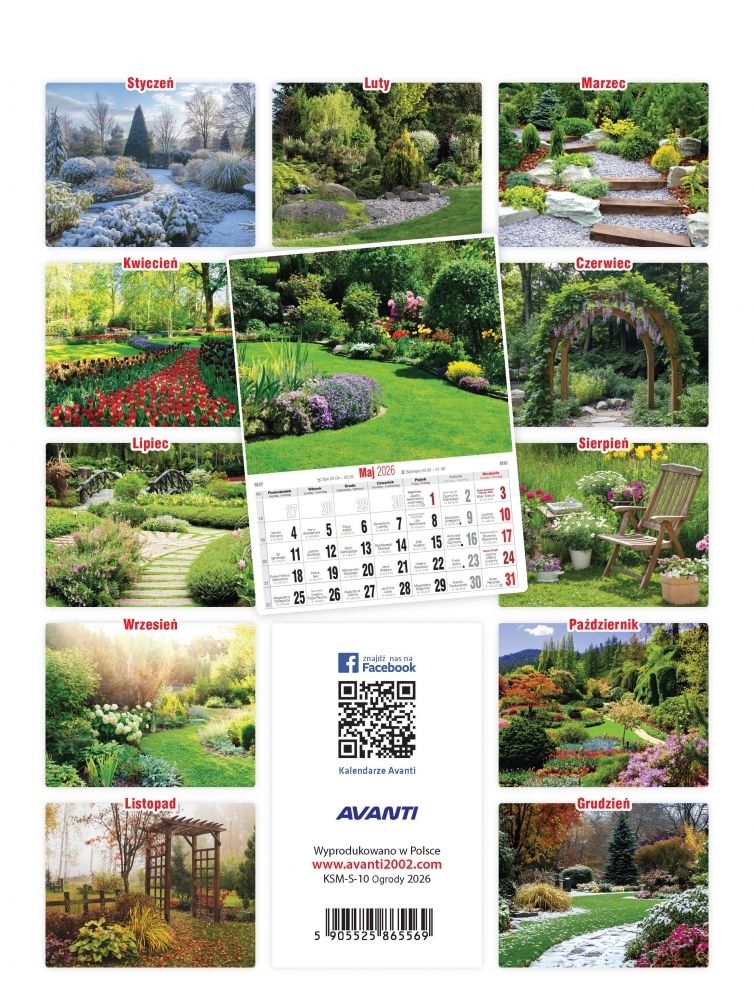 Kalendarz ścienny mały spirala 2026 - Ogrody