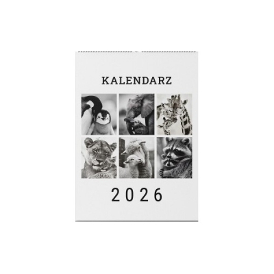 Wieloplanszowy kalendarz ścienny - zawiera 12 plansz z grafikami. Zwierzęta i ich dzieci