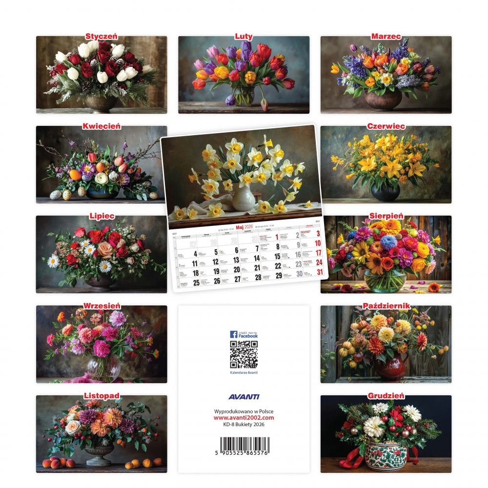 - Duży, solidny kalendarz ścienny, drukowany na papierze kredowym.