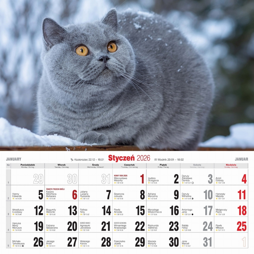 - Duży, solidny kalendarz ścienny, drukowany na papierze kredowym.