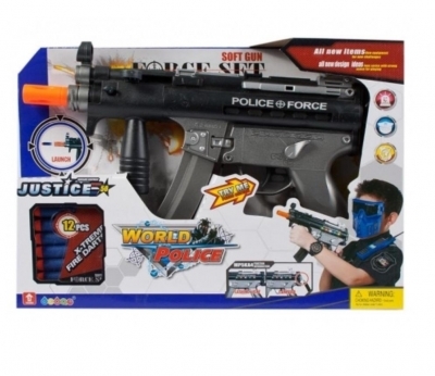 Karabin posiada efekty dźwiękowe (po naciśnięciu spustu słychać dźwięk wystrzału) oraz ruchowe (można przesunąć magazynek, co imituje proces ładowania go). Do karabinu dołączony jest magazynek z 12 piankowymi strzałkami.