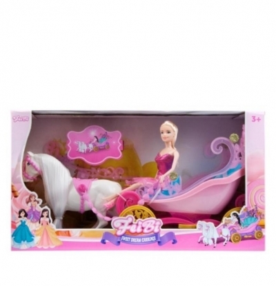 Lalka z koniem i karetą wraz z akcesoriami.