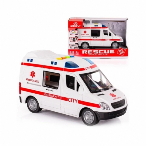 Każde dziecko uwielbia zabawę pojazdami ratunkowymi czy to Policja, Straż Pożarna czy Pogotowie Ratunkowe. Fascynujący świat pełen akcji to element zabawy każdego urwisa, który przez zabawę poznaje prawdziwe oblicze zawodów służb specjalnych. Nasza zabawka to interaktywny ambulans, który z pewnością przypadnie do gustu małemu ratownikowi. Zabawka posiada wiele ciekawych funkcji jak np. otwierane drzwi boczne i tylne ale także funkcje dźwiękowe i efekty świetlne. Samochód specjalny Pogotowia Ratunkowego jest optymalnych rozmiarów dzięki czemu świetnie sprawdzi się podczas zabawy w domu jak i na zewnątrz.