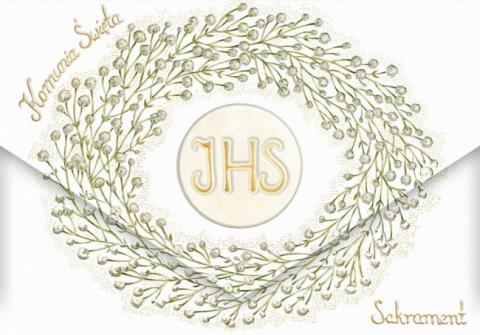 Karnet z kieszonką na pieniądze w formacie A5, składany z trzech. Złocony i tłoczony, teksy życzeń w środku. Wydrukowany na wysokiej jakości papierze. W zestawie koperta.