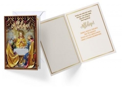 Kartka z efektem trójwymiarowym - dzięki specjalnej technologii, obrazek na kartce wydaje się ruszać pod różnym kątem. Cechy szczególne: wymiary: B6, 16.6 x 11.7 cm po złożeniu zdobienie: trójwymiarowy efekt okazja: Wielkanoc środek: kolorowy, życzenia w środku