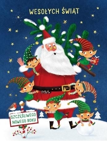 Karnet B6 BN Boże Narodzenie- Mikołaj z elfami