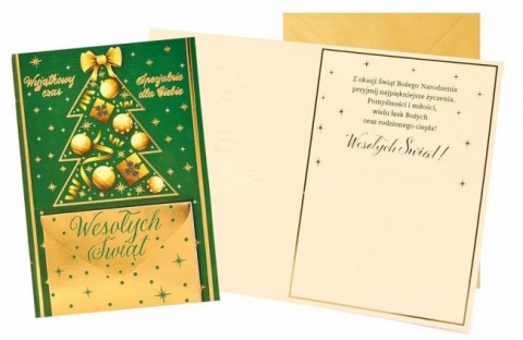 Kartka B6 z ozdobnej serii Dream Cards na Boże Narodzenie - nieduża, ale robi wrażenie dzięki atrakcyjnej kolorystyce i ciekawym zdobieniom.